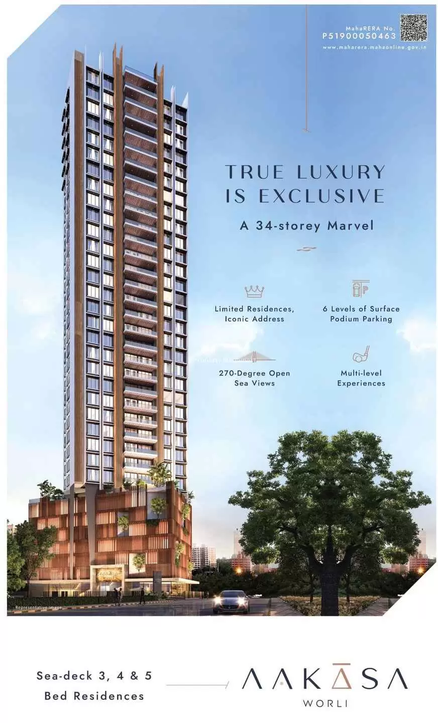 Aakasa Worli by Aakasa Developer is a premium residential development located in the lush and well-connected Mumbai. Aakasa Worli is spread across 0.5 acres. Aakasa Worli features 1 magnificent towers that rise G+34 floors high, offering spacious and thoughtfully designed 3 BHK 4 BHK 5 BHK residences. Each home at Aakasa Worli MUMBAI is crafted to provide a fine balance of comfort, elegance, and modern lifestyle for discerning homebuyers seeking the perfect urban retreat.