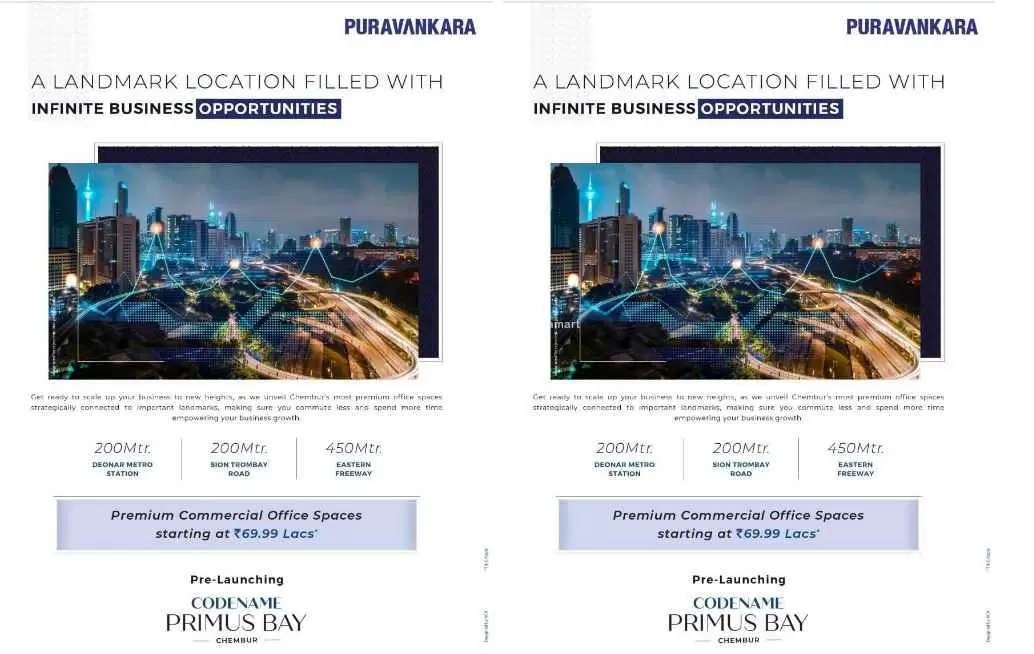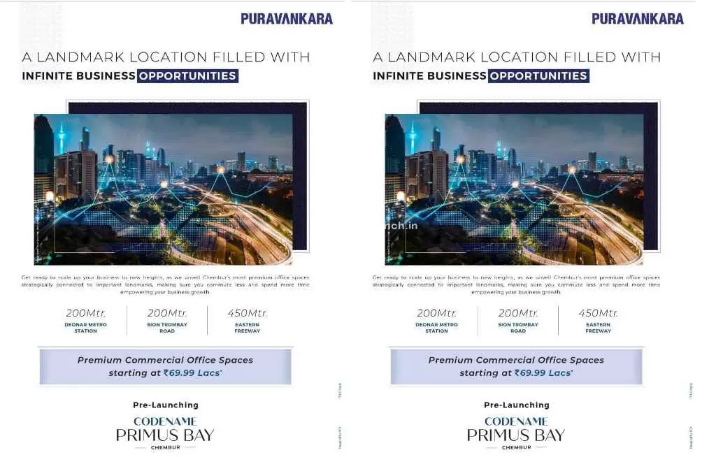 Codename Primus Bay by Puravankara Limited is a premium residential development located in the lush and well-connected chembur. Codename Primus Bay is spread across acres. Codename Primus Bay features 1 magnificent towers that rise floors high, offering spacious and thoughtfully designed residences. Each home at Codename Primus Bay Chembur is crafted to provide a fine balance of comfort, elegance, and modern lifestyle for discerning homebuyers seeking the perfect urban retreat.