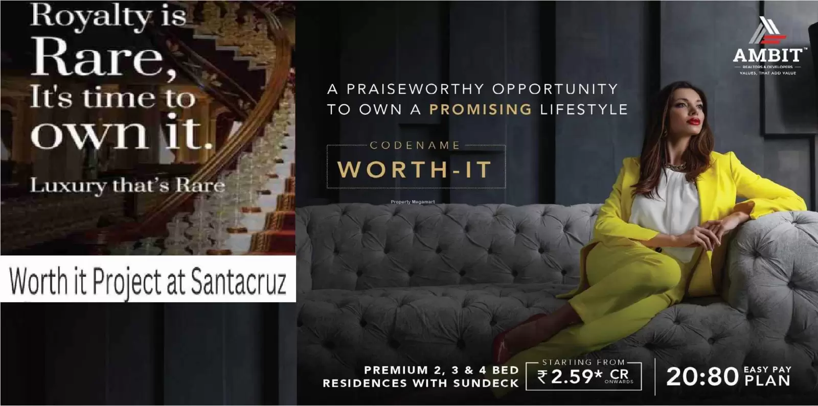 Codename Worth It by Ambit is a premium residential development located in the lush and well-connected Santacruz East, Mumbai. Codename Worth It is spread across acres. Codename Worth It features 1 magnificent towers that rise floors high, offering spacious and thoughtfully designed 2 BHK 3 BHK residences. Each home at Codename Worth It SANTACRUZ is crafted to provide a fine balance of comfort, elegance, and modern lifestyle for discerning homebuyers seeking the perfect urban retreat.