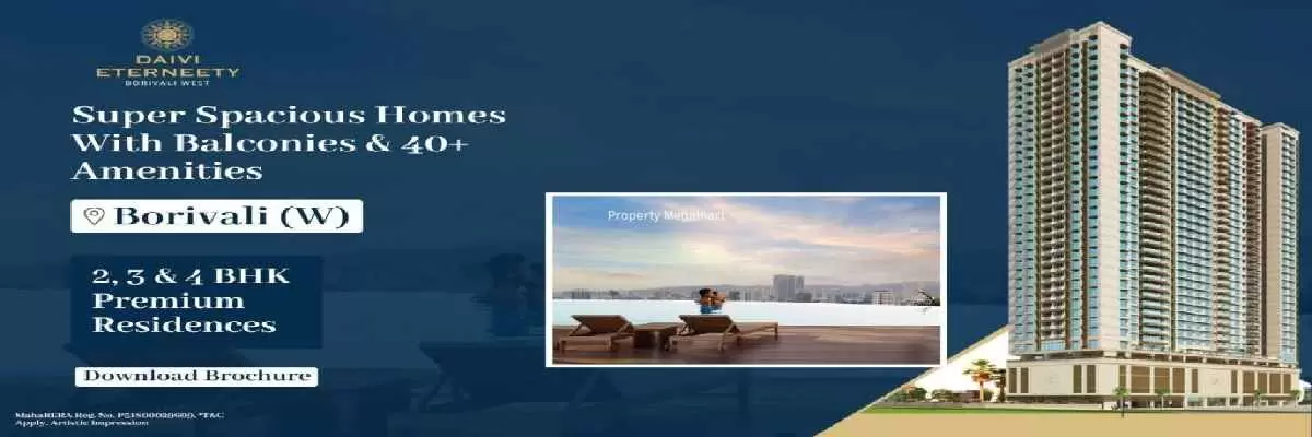 Daivi Eterneety by Shreeji Group is a premium residential development located in the lush and well-connected Dev Nagar & Sai Baba Nagar, Opp. M K N Bhatia High School, Next to Heena Elegance, Borivali West, Mumbai-400092. Daivi Eterneety is spread across acres. Daivi Eterneety features 1 magnificent towers that rise floors high, offering spacious and thoughtfully designed 2 BHK 3 BHK 4 BHK residences. Each home at Daivi Eterneety Borivali is crafted to provide a fine balance of comfort, elegance, and modern lifestyle for discerning homebuyers seeking the perfect urban retreat.