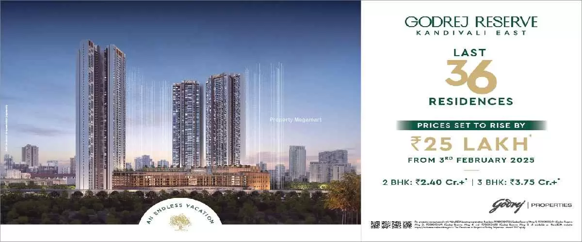Godrej Reserve by Godrej Group is a premium residential development located in the lush and well-connected Kandivli. Godrej Reserve is spread across 6 acres. Godrej Reserve features 1 magnificent towers that rise floors high, offering spacious and thoughtfully designed 2 BHK 3 BHK residences. Each home at Godrej Reserve KANDIVALI is crafted to provide a fine balance of comfort, elegance, and modern lifestyle for discerning homebuyers seeking the perfect urban retreat.