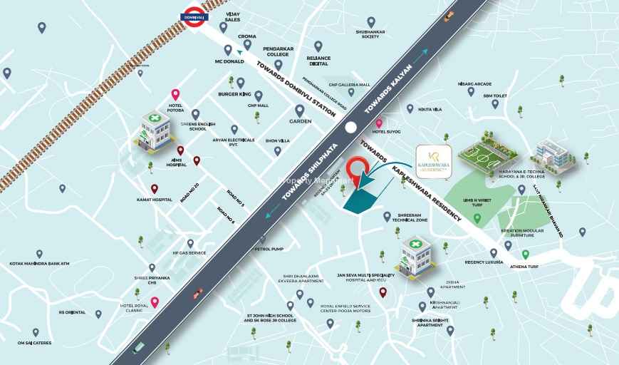 Strategically located in Dombivli East, Mumbai, Kapleshwara enjoys excellent connectivity to key parts of Dombivali. It is well connected to top schools, hospitals, shopping complexes, and entertainment hubs.