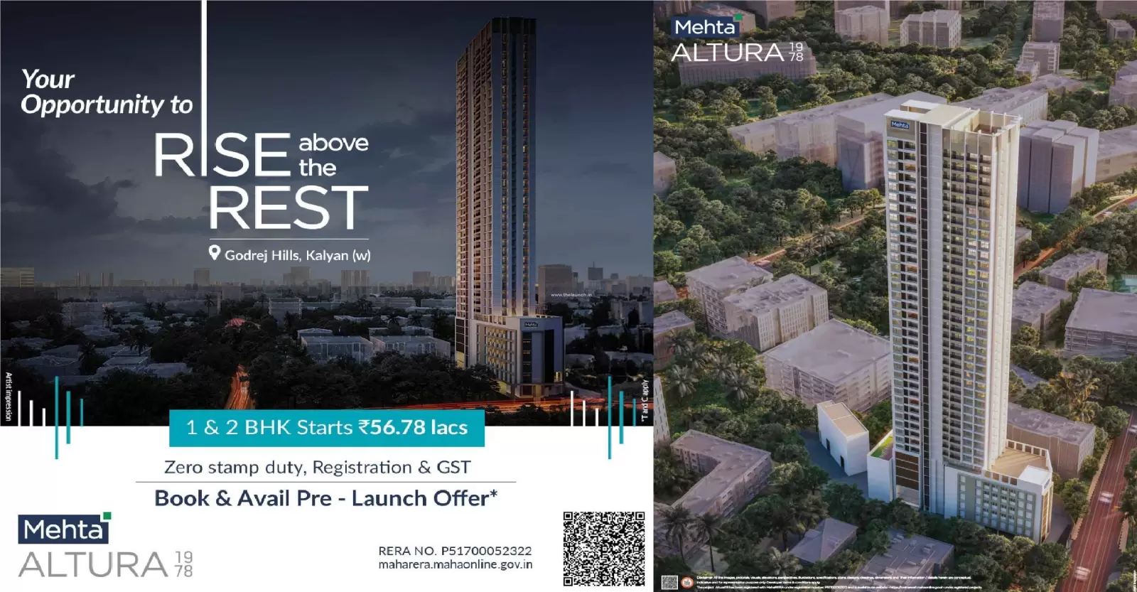 Mehta Altura by Mehta Developers is a premium residential development located in the lush and well-connected Godrej hill, next to Dmart, kalyan west 421301. Mehta Altura is spread across 1 Acre acres. Mehta Altura features 1 magnificent towers that rise floors high, offering spacious and thoughtfully designed 1 BHK 2 BHK residences. Each home at Mehta Altura Kalyan is crafted to provide a fine balance of comfort, elegance, and modern lifestyle for discerning homebuyers seeking the perfect urban retreat.