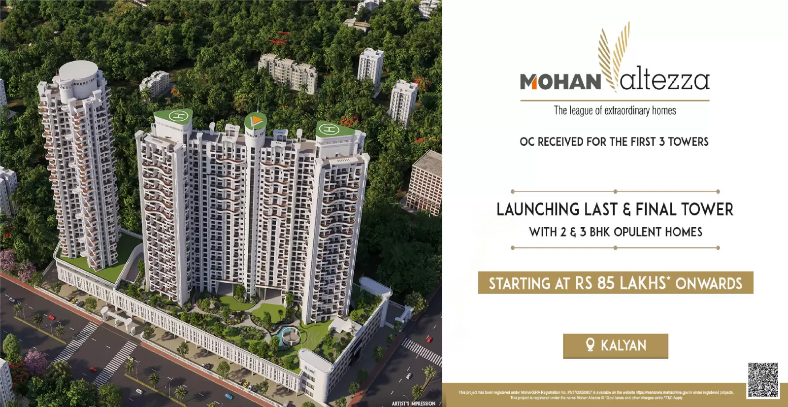 Mohan Altezza by Mohan Group is a premium residential development located in the lush and well-connected Vasant valley West, Wayle Nagar, Ghandhare, Khadakpada, Kalyan. Mohan Altezza is spread across acres. Mohan Altezza features 3 magnificent towers that rise floors high, offering spacious and thoughtfully designed 2 BHK 3 BHK residences. Each home at Mohan Altezza Kalyan is crafted to provide a fine balance of comfort, elegance, and modern lifestyle for discerning homebuyers seeking the perfect urban retreat.