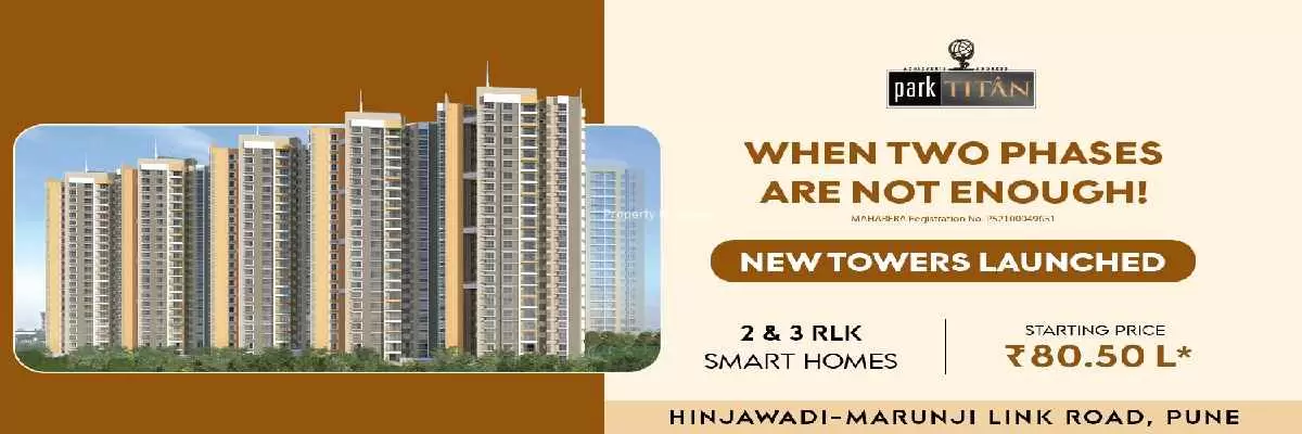 Park Titan by Pride Purple Group is a premium residential development located in the lush and well-connected Hinjewadi. Park Titan is spread across 17 acres. Park Titan features 1 magnificent towers that rise floors high, offering spacious and thoughtfully designed 2 BHK 3 BHK residences. Each home at Park Titan Hinjawadi is crafted to provide a fine balance of comfort, elegance, and modern lifestyle for discerning homebuyers seeking the perfect urban retreat.