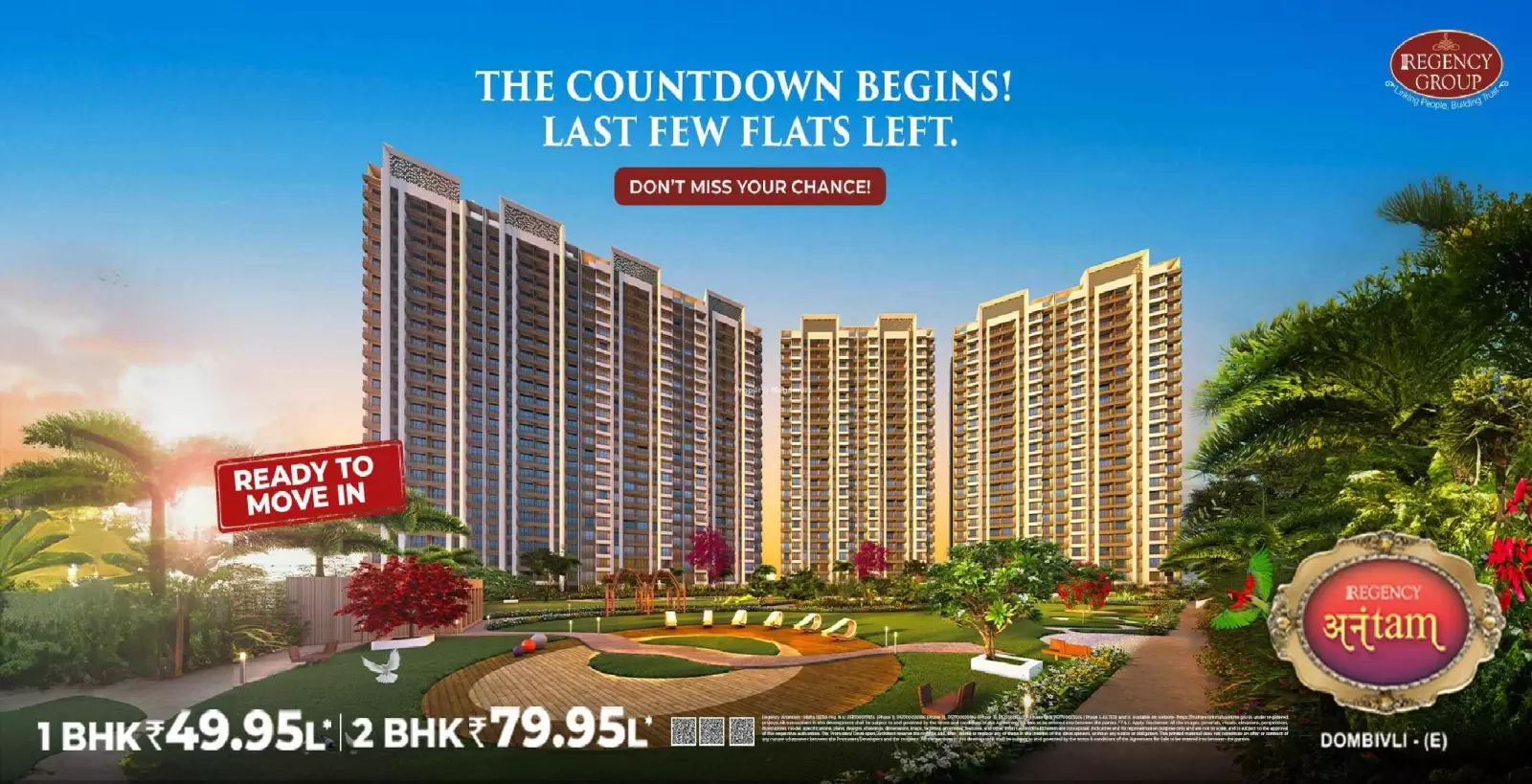 Regency Anantam by Regency Group is a premium residential development located in the lush and well-connected Dombivli East. Regency Anantam is spread across 170 acres. Regency Anantam features magnificent towers that rise floors high, offering spacious and thoughtfully designed 1 BHK 2 BHK residences. Each home at Regency Anantam Dombivali is crafted to provide a fine balance of comfort, elegance, and modern lifestyle for discerning homebuyers seeking the perfect urban retreat.