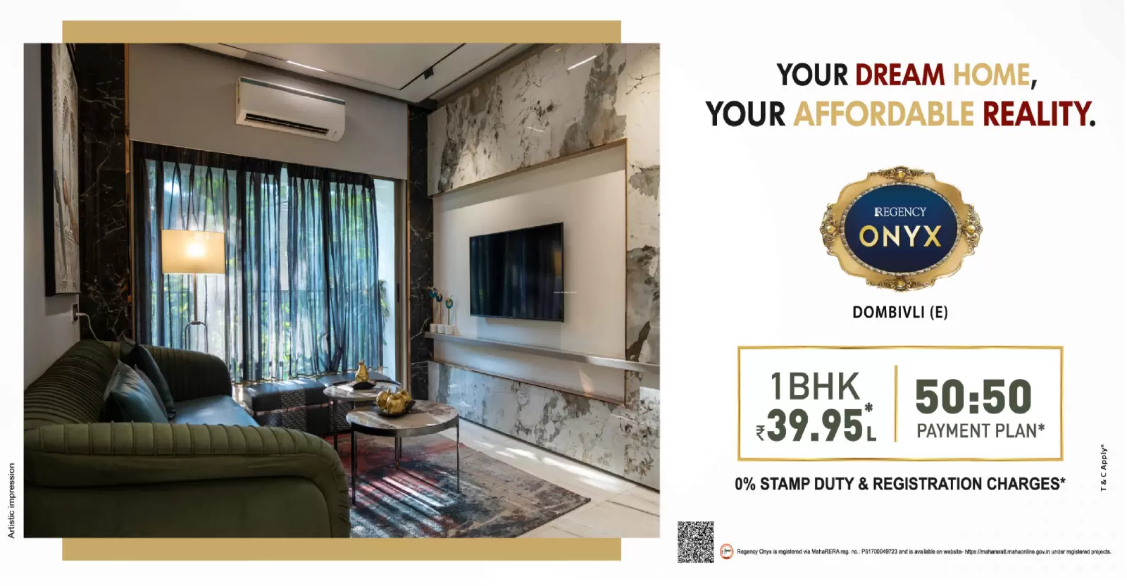Regency Onyx by Regency Group is a premium residential development located in the lush and well-connected Vicco naka, Dombivali East. Regency Onyx is spread across 1 acres. Regency Onyx features 1 magnificent towers that rise floors high, offering spacious and thoughtfully designed 1 BHK residences. Each home at Regency Onyx Dombivali is crafted to provide a fine balance of comfort, elegance, and modern lifestyle for discerning homebuyers seeking the perfect urban retreat.