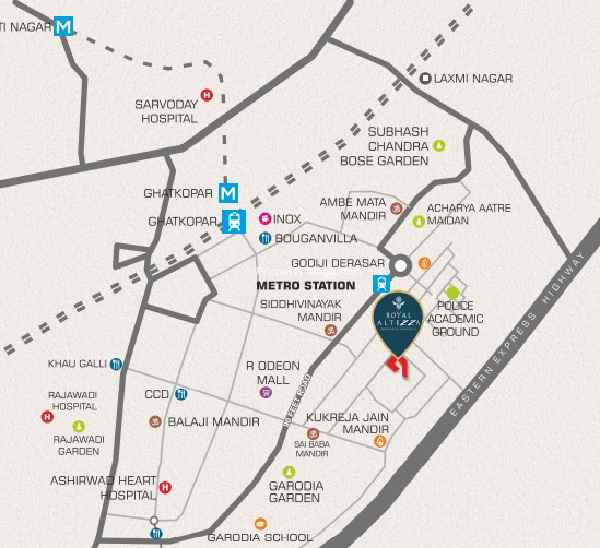 Strategically located in Near Sai Baba Temple Vallabh Baug Ext. Lane, Off 90 Feet Road, Ghatkopar East, Central Mumbai, Royal Altezza enjoys excellent connectivity to key parts of GHATKOPAR. It is well connected to top schools, hospitals, shopping complexes, and entertainment hubs.