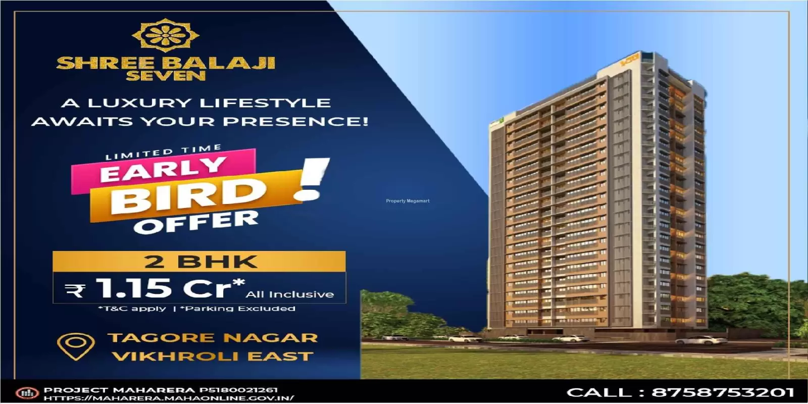 Shree Balaji Seven by Shree Balaji Group is a premium residential development located in the lush and well-connected Vikhroli, Central Mumbai Suburbs, Mumbai. Shree Balaji Seven is spread across 0.018 acres. Shree Balaji Seven features 1 magnificent towers that rise floors high, offering spacious and thoughtfully designed 1 BHK 2 BHK 3 BHK residences. Each home at Shree Balaji Seven VIKHROLI is crafted to provide a fine balance of comfort, elegance, and modern lifestyle for discerning homebuyers seeking the perfect urban retreat.