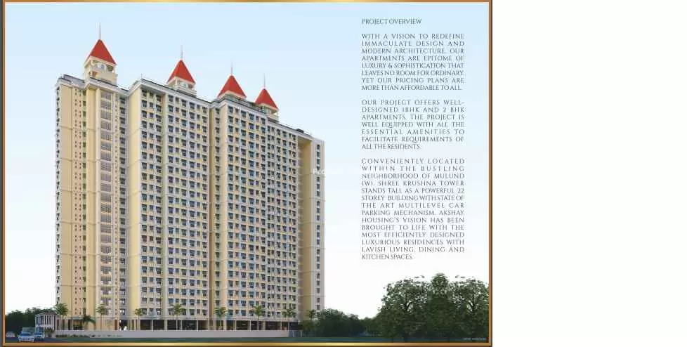Shree krushna Tower by Shree Krushna Infrastructure is a premium residential development located in the lush and well-connected Shree Krushna Tower Siddharth Nagar, Mulund West. Shree krushna Tower is spread across acres. Shree krushna Tower features 1 magnificent towers that rise floors high, offering spacious and thoughtfully designed 1 BHK 2 BHK residences. Each home at Shree krushna Tower MULUND is crafted to provide a fine balance of comfort, elegance, and modern lifestyle for discerning homebuyers seeking the perfect urban retreat.